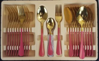 Stainless Steel Gold Polished with Pink Painted Handle – High Quality 36 PCS Cutlery Set – Luxurious Gift Box Set Kitchenware / Homeware / Giftpack