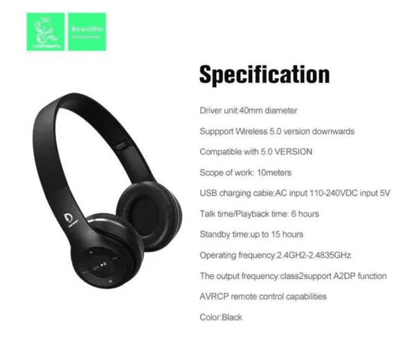 Wireless headphones with high performance with loud and clear sound and excellent quality, works via Bluetooth technology and fits most modern devices from smartphones and tablets