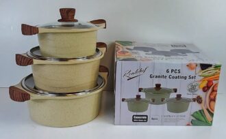 Realchef 6 test PCS Granite Coating Cooking Set – Casserole with Glass Lid – Non-Stick Glass Lid Top Quality Cookware
