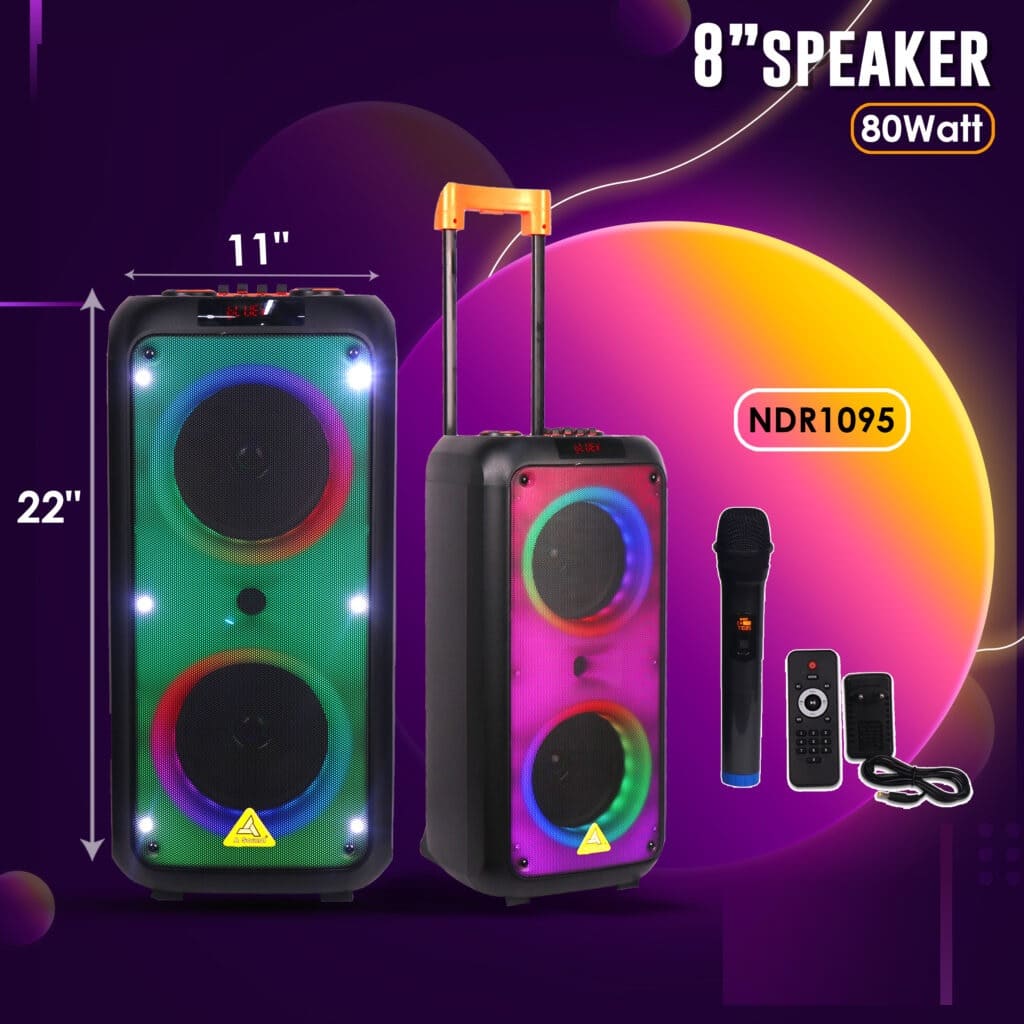 NDR-1095 Double 8 inch Woofer Portable Wireless Karaoke Stage Party Trolley Speakers With Wireless Mic BT Big Power DJ Speaker