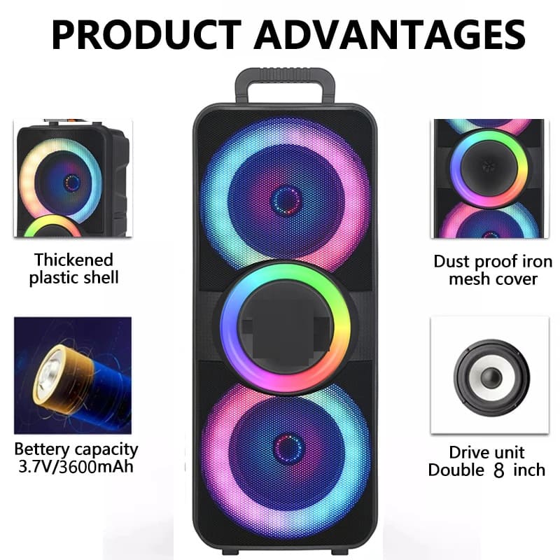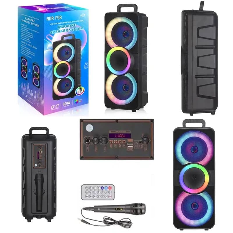 NDR-F98 800W 8″ DUAL PARTY KARAOKE Outdoor Speaker Wireless Bluetooth Speakers WITH MIC AND REMOTE