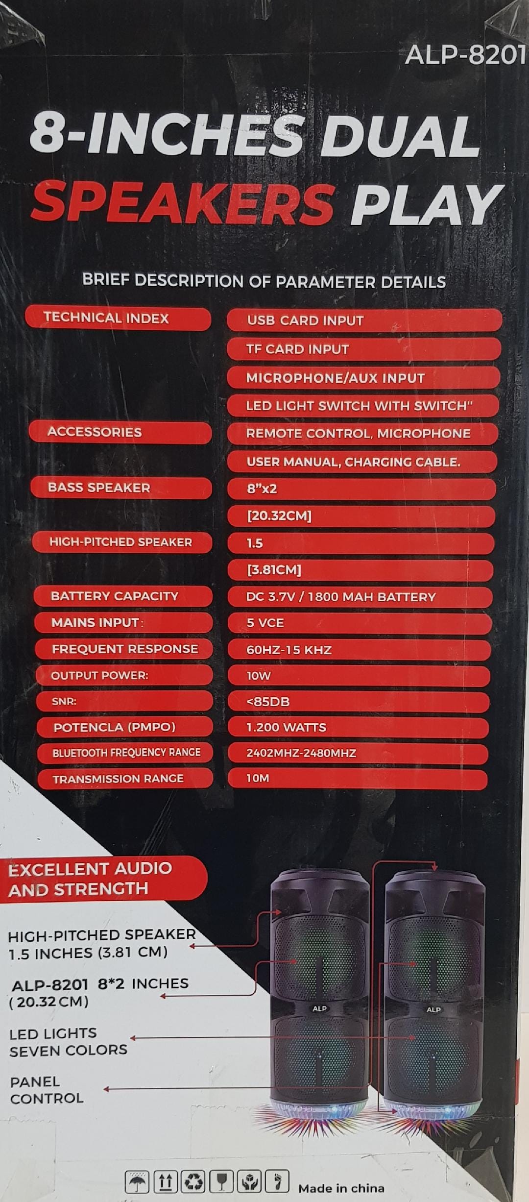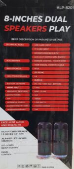 Be the first to review “ALP-8202 Dual 8 Inch Bluetooth Portable 1200W P.M.P.O Speaker with LED Light and Karaoke Mic Ready Stock” Cancel reply