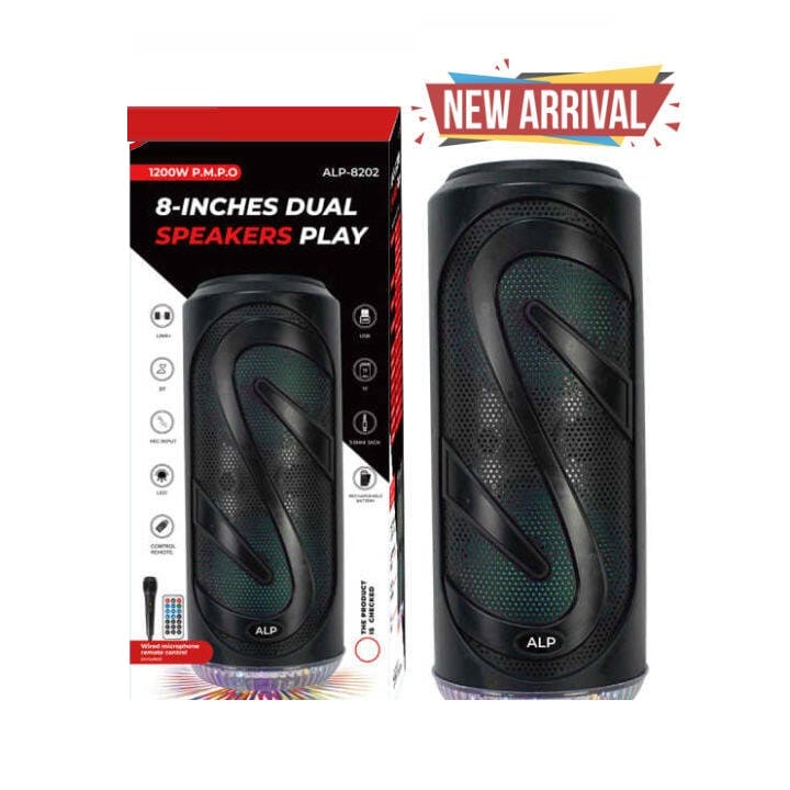 ALP-8202 Dual 8 Inch Bluetooth Portable 1200W P.M.P.O Speaker with LED Light and Karaoke Mic Ready Stock – Spantik